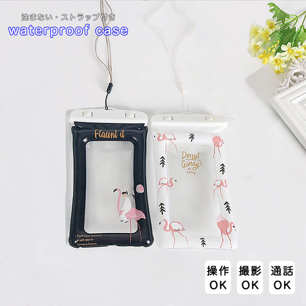 防水ケース スマートフォン iphone 小物ケース フラミンゴ ネックストラップ スマホ 海 プール 夏