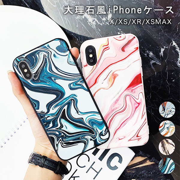 iPhoneケース マーブル柄ケース 大理石風 シリコン ボタン凸仕様 ストラップホール付 iPhoneXS/iPhoneXR/iPhoneXSMAX対応 TPU素材