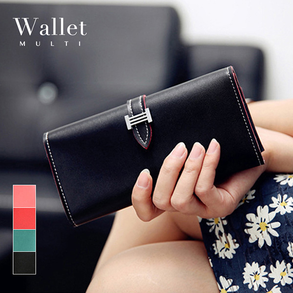 財布 長財布 レディース レディース長財布 ウォレット マルチウォレット シンプル PUレザー ベルト オシャレ 収納力抜群 レッド ピンク エメラルドグリーン ブラック おしゃれ デイリー 大人かわいい カラー豊富
