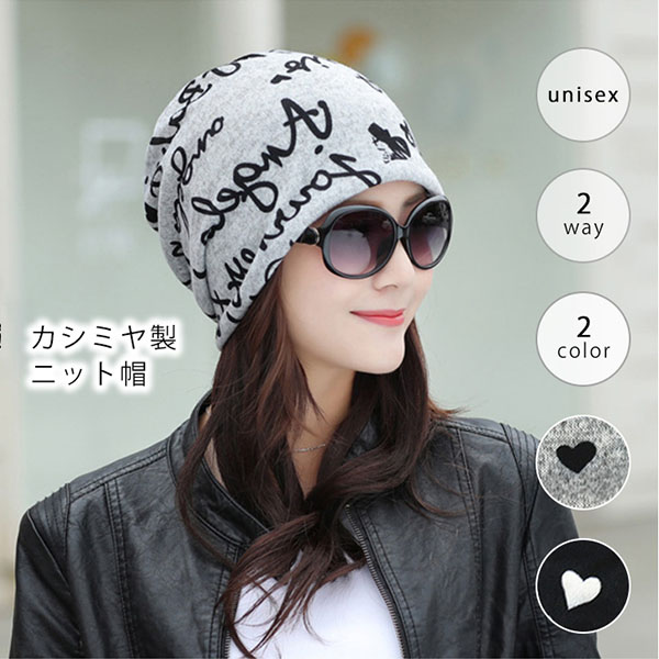 帽子 ニット帽 レディース ユニセックス カシミヤ製 ネックウォーマー 2way 伸縮性抜群 英文字ロゴ おしゃれ 大人かわいい カジュアル お揃い グレー ブラック 防寒 寒さ対策 肌触り抜群 男女兼用 オシャレ
