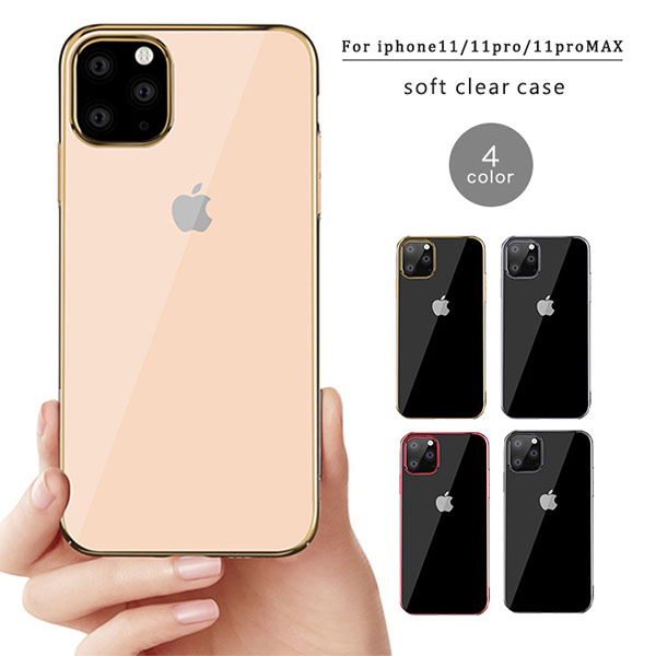 iPhoneケース iPhoneカバー iPhone11 クリアケース iPhone11pro 11proMAX ソフトケース シンプル メタリック塗装 快適な手触り 指紋が付きにくい 薄い フィット 耐久性抜群 TPU素材 耐衝撃 全4色 レッド ブラック ゴールド シルバー