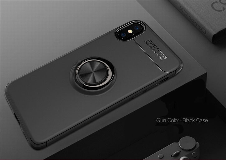 アイフォンケース iPhoneケース iPhone 薄型 軽量 リング付き リング 指紋防止 マグネット対応 360度回転 リングスタンド機能 リングスタンド スタンド ブラック iPhoneXS iPhoneXR おしゃれ シンプル かっこいい 大人カッコイイ