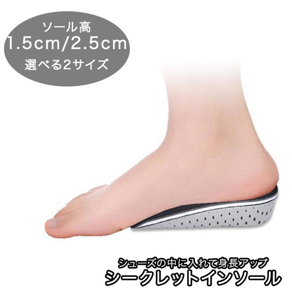 シークレットソール インソール シークレットインソール 身長アップ 低反発素材 疲れにくい 滑りにくい 柔らかい 履き心地抜群 通気性抜群 ムレにくい 蒸れにくい 軽量 万能 1.5cm 2.5cm ユニセックス 男性 女性 ブラック