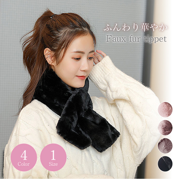 ティペット マフラー ファー レディース ファーティペット フェイクファー ファーマフラー あったか 寒さ対策 ふわふわ フェミニン かわいい 防寒 冬 もこもこ カラー豊富 ピンク グレーブラック 全4カラー 肌触り抜群 首元暖か