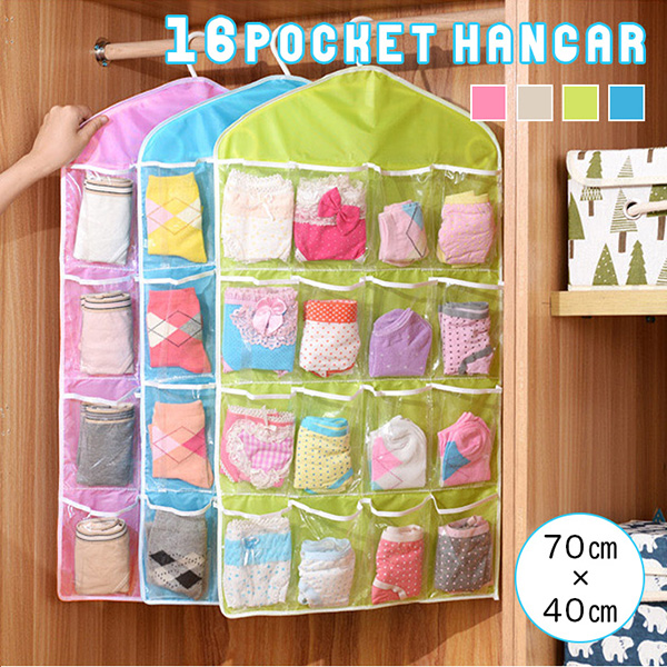 16ポケットハンガー ハンガー 雑貨 収納 ポケット コンパクト クローゼット たっぷり収納 透明 収納力抜群 小物収納 小物入れ 小物収納ポケット