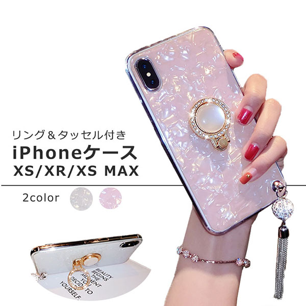 アイフォンケース ケース ソフトケース 背面ケース 背面カバー かわいい おしゃれ シェル柄 タッセル 携帯カバー 携帯ケース iphoneXS max iphoneXR iphoneXS iPhone カバー ホワイト リング ゴールド シルバー チャーム付