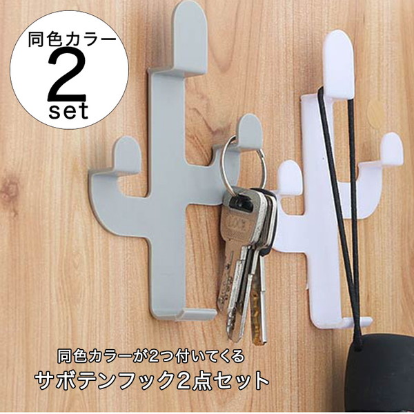 フック 壁掛け 引っ掛け マルチフック サボテン サボテンフック 2点セット 引っ掛けフック マルチ サボテン おしゃれ シンプル グレー ホワイト キッチン 玄関 収納フック 鍵 キーフック キッチン用品 かわいい 粘着テープ