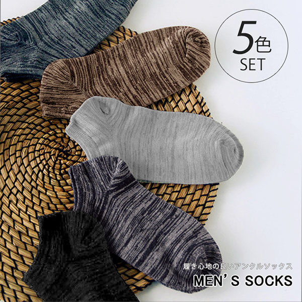 メンズ靴下 メンズソックス メンズ 靴下 ソックス 5色セット 履き心地抜群 アンクルソックス くるぶしソックス シンプル コットン使用 通気性 吸汗性 快適な履き心地 5カラー1セット