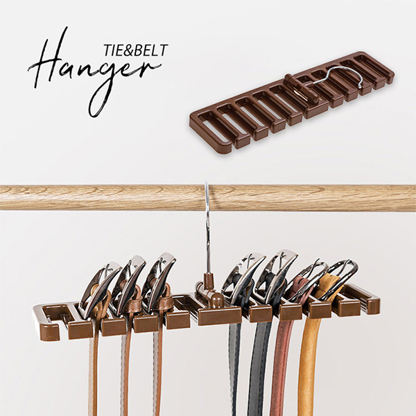ハンガー タイハンガー ベルトハンガー ネクタイハンガー タイ ネクタイ ベルト 使いやすい 便利 収納力抜群 省スペース 固定 10本収納可能 最大10本 10本 ブラウン クローゼット収納 収納グッズ ベルト用 ネクタイ用