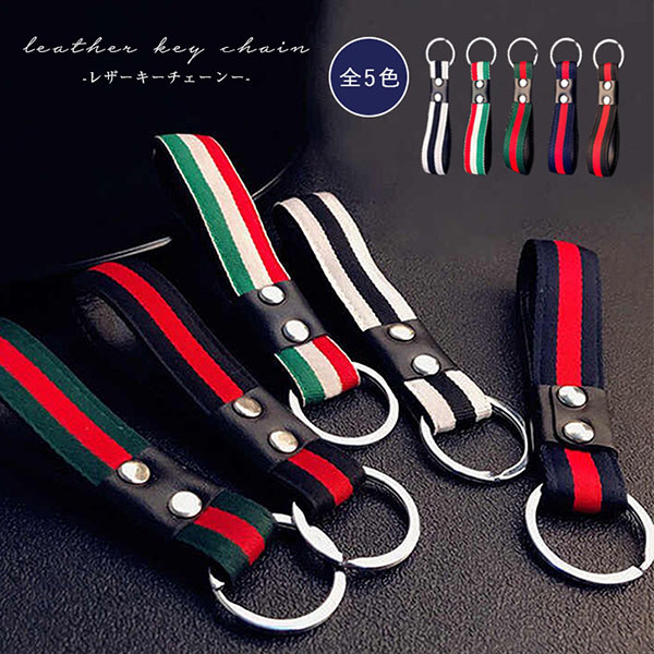 キーチェーン レザー レザーキーチェーン シンプル ストライプ 丈夫 亜鉛合金 オシャレ 男女兼用 かっこいい おしゃれ カラータイプ豊富 全5タイプ 鍵 スマートキー レザー編 組ロープ製