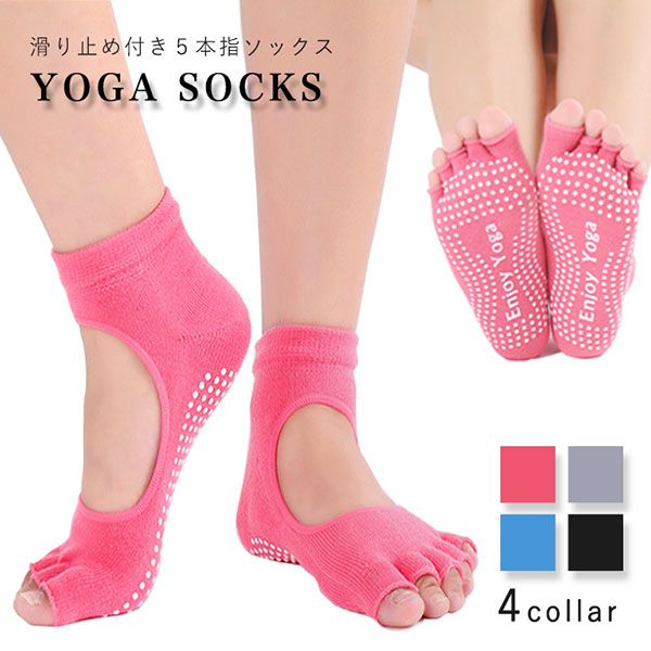 ソックス 靴下 ヨガソックス 滑り止め付き 5本指ソックス 滑らない 伸縮性抜群 足ムレ防止 履き心地抜群 通気性抜群 コットン素材 お肌に優しい 外反母趾予防 全4色 カラーバリエーション