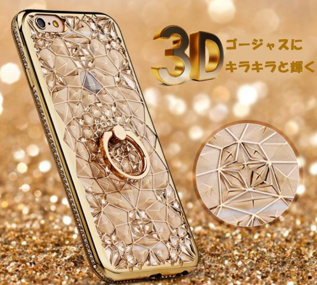 iPhoneケース iPhone アイフォン ケース リング付き iPhoneXS リング付きケース おしゃれ ゴージャス ゴールド アイフォンケース キラキラ ダイヤモンド柄 TPU 高級感 落下防止 スタンド機能