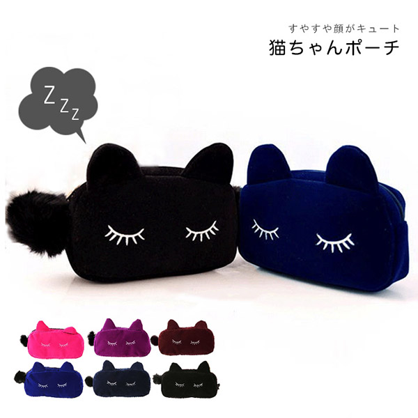 ポーチ ハンドポーチ メイクポーチ 猫ポーチ キャットデザイン 猫ちゃん ねこちゃん ネコちゃん型 かわいい おしゃれ ベロア生地 ファーファスナー 可愛い オシャレ カラー豊富 カラーバリエーション