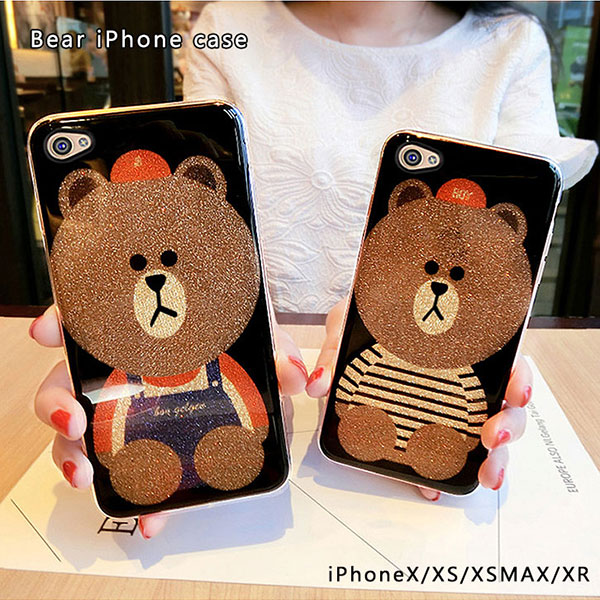 iPhoneケース クマ柄ケース iPhoneXS/iPhoneXR/iPhoneXSMAX対応 ボーダーベア サロッペベア キラキラ ラメ おしゃれ かわいい TPU+PC素材