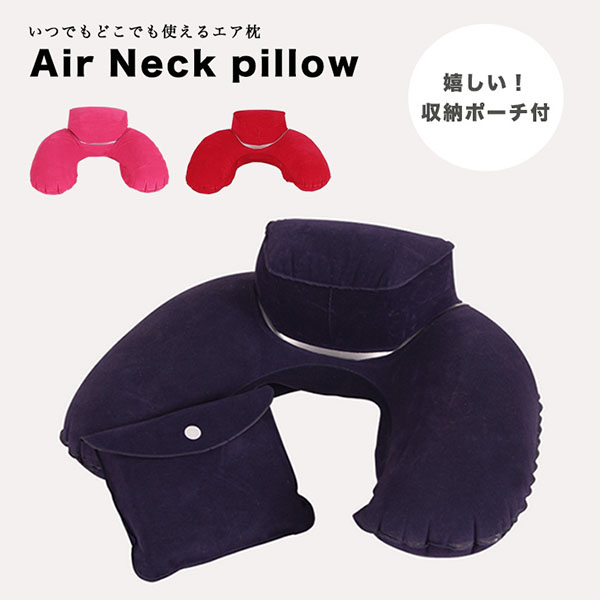 エア枕 ネックピロー エアネックピロー 収納ポーチ付き どこでも使える 出張 旅行 飛行機 新幹線 ドライブ 長距離移動 軽量 頸椎サポート コンパクト 専用ポーチ 疲れ軽減 全3色