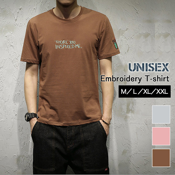 Tシャツ トップス 半袖 ユニセックス 刺繍ロゴ入り ロゴTシャツ 刺繍 刺繍ロゴ入りTシャツ メンズ レディース シンプル 着回し抜群 デイリー お揃い オシャレ 合わせやすい サイズ豊富 ライトグレー ピンク ブラウン ロゴT