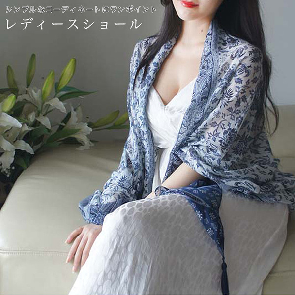 ショール レディースショール エレガント ワンポイントおしゃれ 肌触り抜群 着心地抜群 さらさら 日焼け対策 紫外線対策 冷房対策 オシャレ 大人可愛い ブルー きれいめコーデ 綿素材