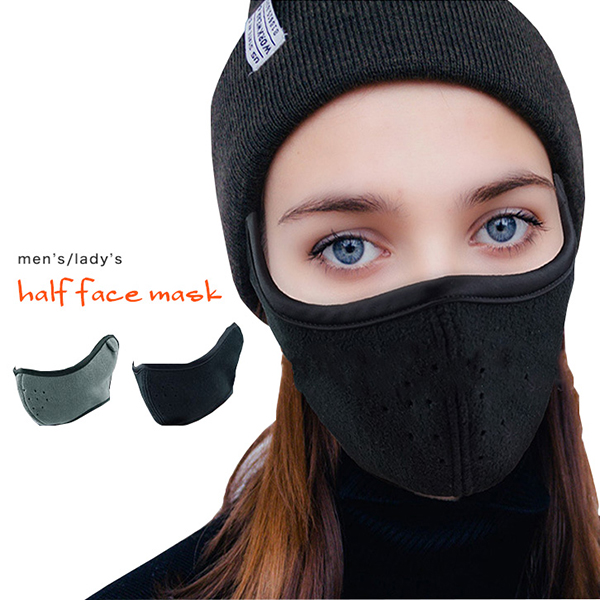 フェイスマスク ハーフフェイスマスク 男女兼用 軽量 暖か あったか 防寒対策 ウィンタースポーツ 登山 フィット感抜群 防塵防寒 フリース生地 通気性抜群 柔らかい生地 3次元フィット面 シンプル 無地 マスクイヤーインワン
