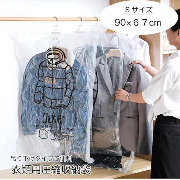 衣類圧縮袋 圧縮袋 衣類用 衣類圧縮ハンガー 小サイズ 圧縮 ハンガータイプ ハンガー 吊るせる すっきり コンパクト 省スペース 整理整頓 クローゼット ハンガーラック ダウンジャケット コート アウター 洋服カバー 衣類 洋服 吊り下げ