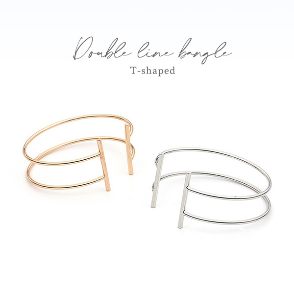バングル レディース ブレスレット 2ライン ダブルライン レディースバングル レディースブレスレット ブレス シンプル きれい おしゃれ 合わせやすい アクセント ゴールド シルバー きれいめ 上品 エレガント 映え アクセント スタイリッシュ