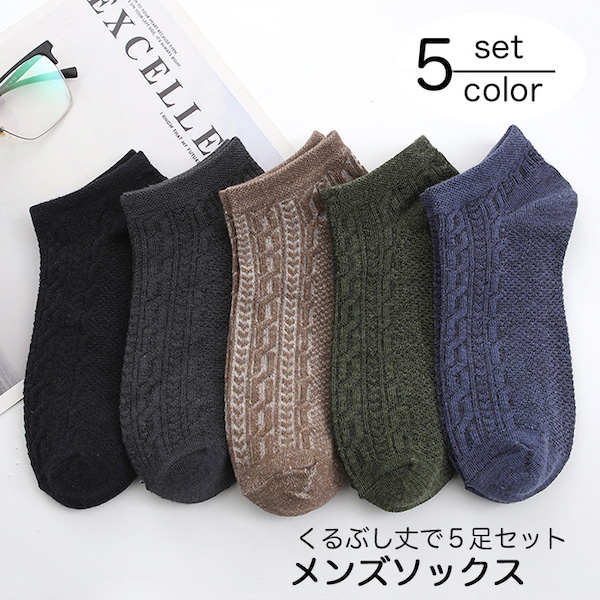 靴下 ソックス メンズ くるぶし丈 無地 シンプル 5足セット リブ編み 編み込み 使いやすい デイリー スニーカー ビジネス 丈夫 スニーカー おしゃれ 伸縮性 通気性抜群 ムレにくい コットン素材