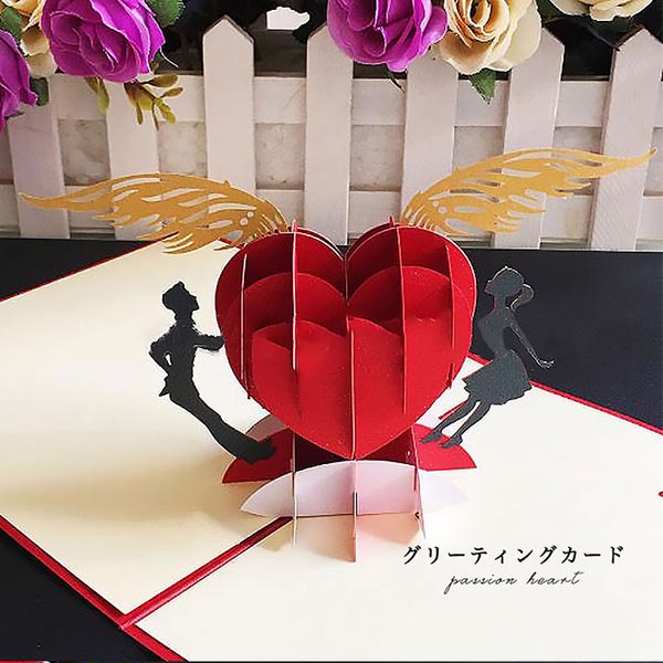 グリーティングカード 飛び出すカード ポップアップカード ありがとうカード 記念日 結婚 贈り物 プレゼント ギフト ウエディング お祝い サンキューカード カップル ハート お祝いカード 飛び出すハート レッド