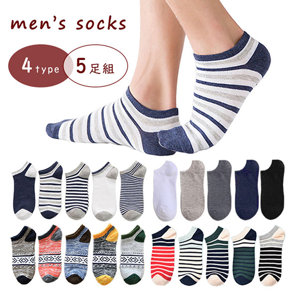 ソックス メンズソックス くるぶしソックス 靴下 メンズ メンズ靴下 無地 ボーダー アジアン柄 オシャレ エスニック柄 シンプル 柄 5足組 全4タイプ バリエーション豊富 カジュアル オフィス