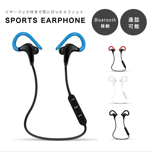 スポーツイヤホン Bluetooth接続 フック付イヤホン イヤーフック フィット感 音楽視聴 ハンズフリー通話 ヘッドセット