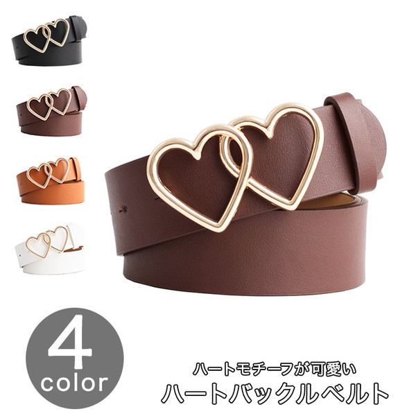 ベルト レディースベルト ハート ハートバックル レディース ハートモチーフ ハートバックルベルト ゴールドバックル 大人かわいい シンプル ガーリー カジュアル 合皮 ホワイト ブラック キャメル ブラウン 合わせやすい