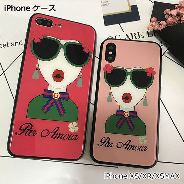 iPhoneケース アイフォンケース iPhoneカバー サングラスガール おしゃれ 人気 背面強化ガラス 可愛い 大人可愛い レディース カラフル おしゃれ女子 グラサンガール TPU素材 強度抜群