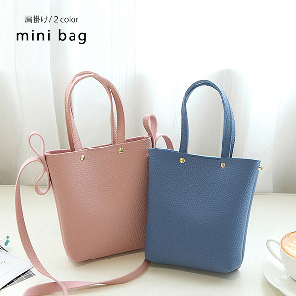 ミニバッグ 2wayバッグ ハンドバッグ ショルダーバッグ かわいい オシャレ シンプル 無地 全2色 ピンク ブルー PU レザー風 開閉口ボタン式 合わせやすい 大人可愛い カジュアル