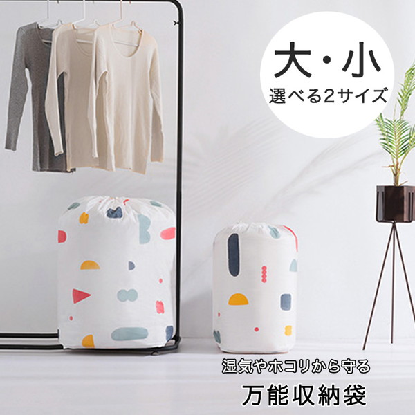 収納袋 袋 収納 大小 2サイズ 布団 ひざ掛け 衣類 毛布 湿気防止 埃防止 巾着タイプ 丈夫 留め金付き 破れにくい おしゃれ シンプル クローゼット 押し入れ クローゼット収納 押し入れ収納 万能 衣替え