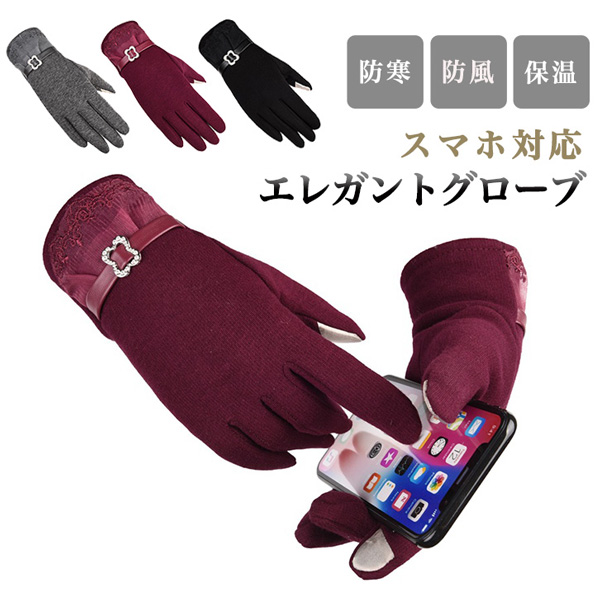 手袋 手ぶくろ レディース グローブ エレガント おしゃれ きれいめ ゴージャス 防寒 防風 保温 スマホ対応 スマホ操作可能 タッチパネル操作OK あったか 冷え対策 裏地ボア 暖かい 肌触り抜群 保温性 レザーベルト