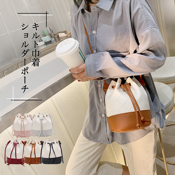 バッグ ショルダーバッグ レディース レディースバッグ 巾着型 キルティング加工 バイカラー ツートンカラー 肩掛け 斜め掛け 大人カジュアル シンプル 合わせやすい 大人かわいい デイリー ピンク グレー レッド カーキ ブラック