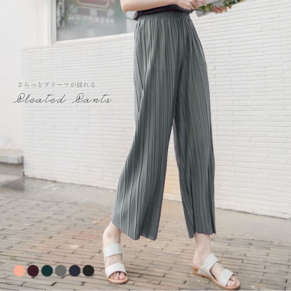 レディースワイドパンツ スカンツ スカーチョ プリーツガウチョ プリーツ 定番 春 夏 パンツ 可愛い おしゃれ カラー豊富 フェミニン 合わせやすい きれいめ プリーツデザイン カジュアル