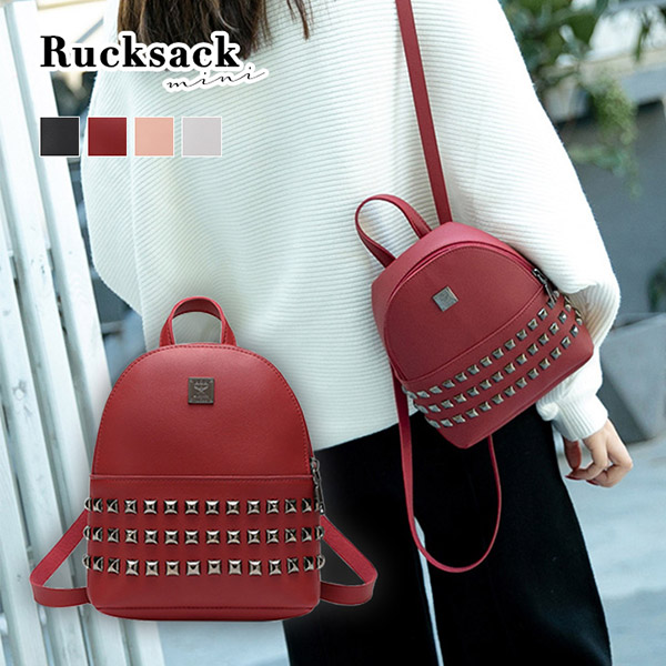 リュック バックパック ミニリュック レディースリュック ミニサイズ コンパクト レディース スタッズ スタッズ付き オシャレ トレンド ショルダー長さ調節可能 デイリー使い カラー豊富 デイリー レッド ピンク ライトグレー ブラック