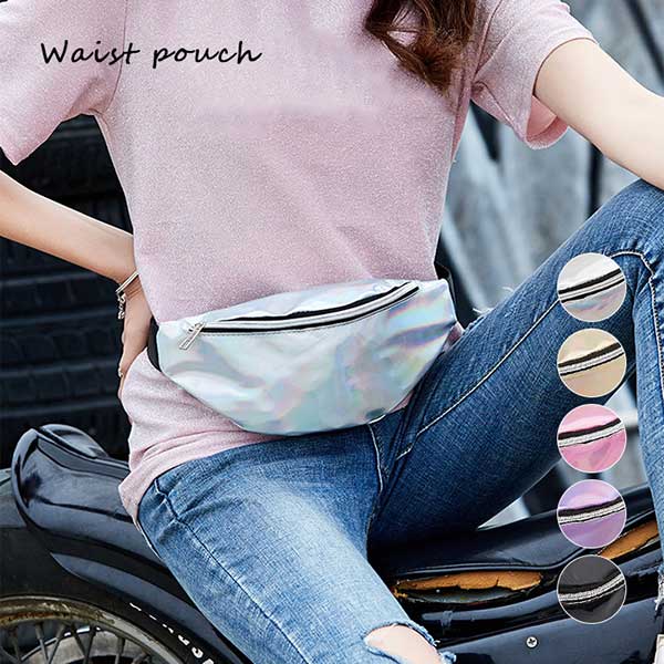 ウエストポーチ メタリック レディース おしゃれ コンパクト 旅行 サブバック しっかり収納 軽量 使いやすい カジュアル トレンド 斜めがけ ウエスト 長さ調節可能 ショルダー