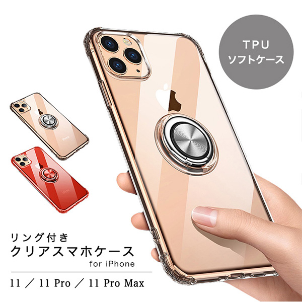 iPhoneケース iPhoneカバー ケース カバー iPhone用 リング付き クリアケース 透明ケース リング付きケース 360度回転式 スタンド機能 動画視聴 TPU やわらかい 着脱簡単 操作性抜群 薄型 車載ホルダー対応 クリア レッド