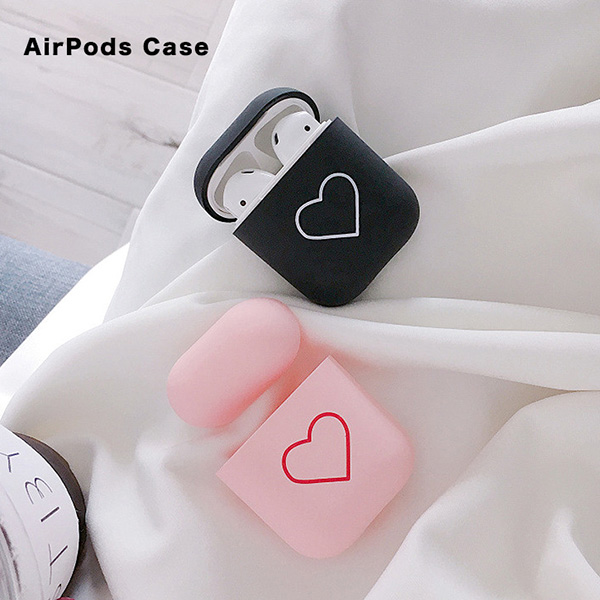 AirPodsケース カバー Airpods ハート かわいい シンプル Airpods用 充電穴 装着したまま充電可能 TPU素材 着脱簡単 ピンク ブラック 装着 アップル イヤホン apple アクセサリー 衝撃吸収