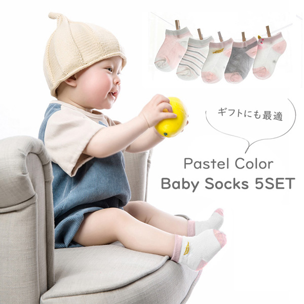 靴下 ベビーソックス ソックス ベビー靴下 ベビー用 出産祝い ギフトセット かわいい ショートソックス 赤ちゃん 5点セット コットン キュート ピンク パステルカラー 女の子 おしゃれ ベビー あんよ 通気性抜群 伸縮性