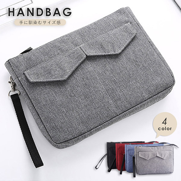 バッグ ハンドバッグ クラッチバッグ セカンドバッグ シンプル コンパクト 持ち運び便利 旅行 お出かけ デイリー 収納力抜群 無地 収納ポケット付き ファスナー開閉 ハンドストラップ着脱可能 カラー豊富 全4色