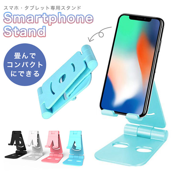 スタンド スマホスタンド タブレットスタンド コンパクト 折りたたみ式スタンド 軽量 薄い 持ち運び便利 角度調節可能 ブラック ホワイト ピンク ブルー シンプル 動画視聴 折りたたみ可能 カラー豊富 カラーバリエーション