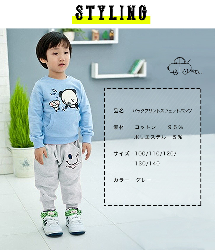 キッズ スエットパンツ ジョガーパンツ ルームウェア ダンス 男の子 女の子 子供 ジュニア ニコちゃん バッグプリント