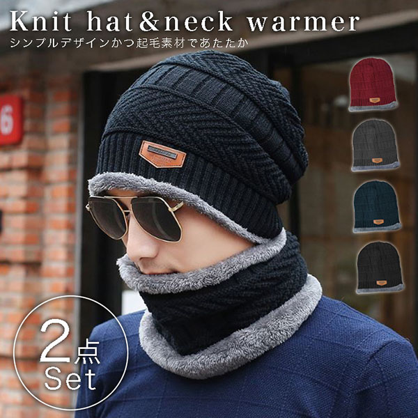 ニット帽 帽子 ネックウォーマー ぼうし メンズ レディース ユニセックス 秋 冬 保温性抜群 防寒対策 裏起毛 あったか 暖かい 寒さ対策 シンプル アウトドア スポーツ デイリー 肌触り抜群 ポイントロゴ付き 全4カラー
