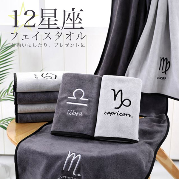 タオル フェイスタオル 12星座タオル キッチン 日用品雑貨 洗面用品 バス用品 ワンポイント 星座ロゴ 無地 シンプル おしゃれ プレゼント ギフト 星座 ライトグレー グレー 全2色 お揃い 肌触り抜群 やわらかい 肌触りやわらか