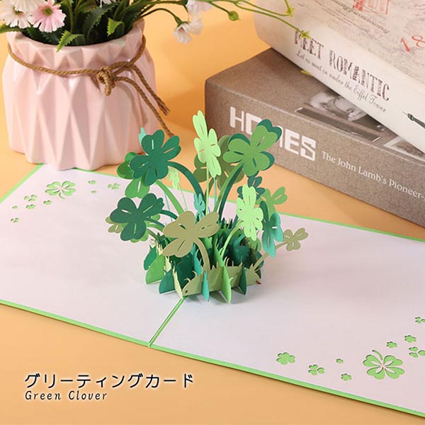 グリーティングカード 飛び出すカード ポップアップカード 誕生日 記念日 結婚 贈り物 クリスマス プレゼント ギフト お見舞い ウエディング お祝い サンキューカード クローバー 四つ葉 ラッキークローバー