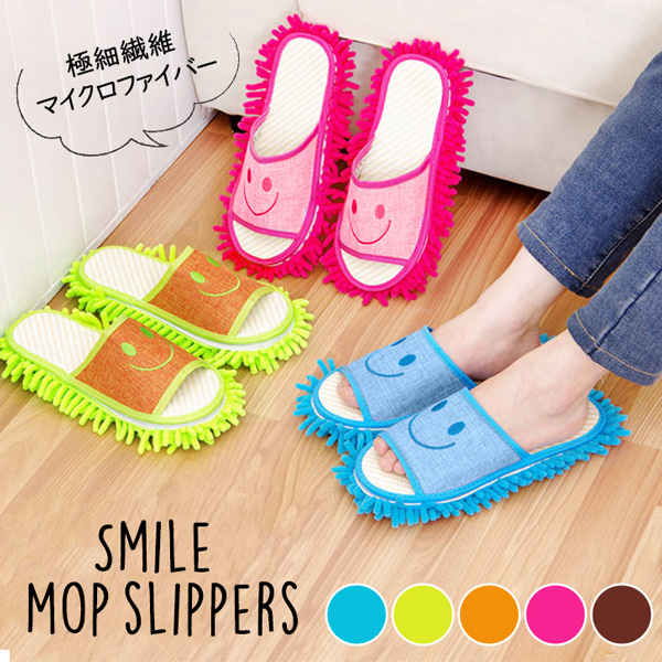 スリッパ モップスリッパ おしゃれ 洗える 洗濯 スマイリー スマイル かわいい スマイルモップスリッパ 掃除 極細繊維 マイクロファイバー 吸水性 通気性 ほこり 清潔 取り外し可能 衛生的 カラバリ豊富 カラー豊富 全5種類