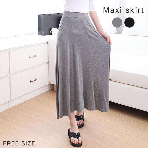 マキシスカート マキシ フリーサイズ ハイウエストマキシスカート シンプル ハイウエスト 着回し抜群 合わせやすい ウエストゴム 伸縮性あり 着脱簡単 らくちん サイドポケット付き Aライン 細魅せ 美シルエット 着心地抜群 透けにくい