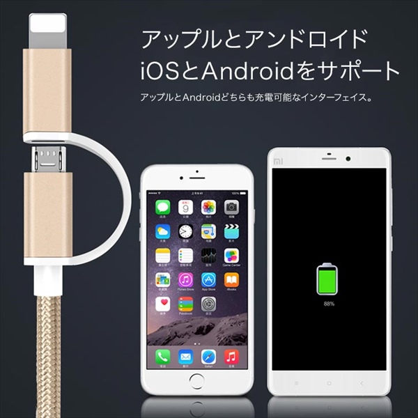 2in1 ライトニングケーブル 携帯電話 充電ケーブル アルミ合金 ナイロン編み ケーブル 充電 ライトニングケーブル データ転送 ケーブル Lightning ケーブルUSB ケーブル 1m ナイロンメッシュ 急速充電 高速データ転送 変換ケーブル