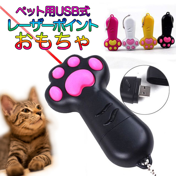 猫おもちゃ 猫用おもちゃ 玩具 ペット用 レーザーポインター レーザーポイント USB式 ビーム レーザー光 光る 夢中 肉球 肉球デザイン 運動不足解消 イエロー ホワイト ピンク ブラック ボールチェーン付き 持ち運び便利